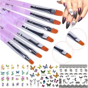 7Pcs UV Gel Nail Art Brush Pen 3 Sheets Nail Stickers Decals Accessories Kit Nail Polish Drawing Painting Brushes Manicure Design Tools