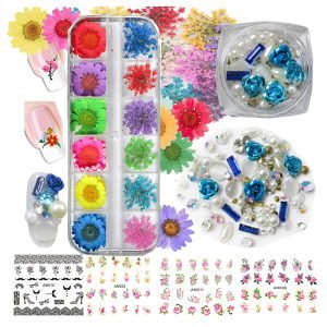 Nail Dried Flowers, 3D Rhinestones Nail Art Decorations Kits, Pearl Crystals Pressed Dry Daisy Flower Nail Jewelry Accessories, Floral Stickers Decals for Nail Design, Craft, Makeup