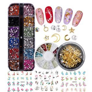 3D Glitter Rhinestones Nail Art Decorations Set Kit, Water Slide Nail Stickers Decals, Acrylic Pearl Metal Nail Studs Jewelry Accessories for Nail Design, Phone Case, Makeup