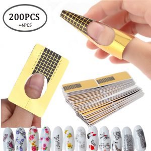 200PCS Nail Art Tips Extension Forms Guide French DIY Tool Acrylic UV Gel Tools,4PCS Water Transfer Nail Art Stickers Manicure Nail Tips Decorations