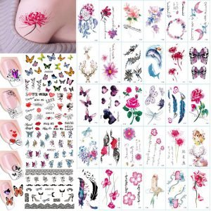 30 Sheet Women Body Art Temporary tattoos Stickers Kit, Flower Animal Butterfly Feather Fake False Tattoos for Arm Legs Back Kids 4 Sheet Nail Art Sticker Decal Decorations