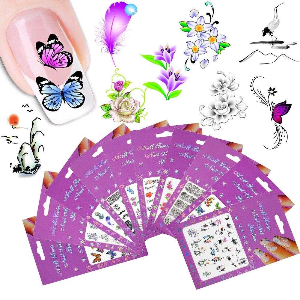 This stickers decals set contains 10 sheet nail art stickers with individual package, each pack included 15~24 individual stickers. Various style for your choice