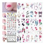 Various types: You may get cute dolphin, butterfly, heart, letters, feather, deer and various flowers tattoo stickers on this set.