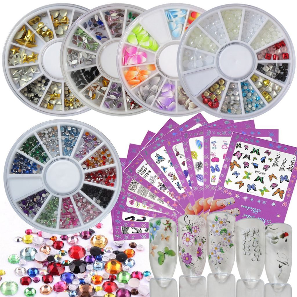 Nail Rhinestones Charms Set 10 Sheets Nail Art Stickers Decals 5 Box Nail Rhinestones Tools Accessories Manicure Pedicure Kit for Teens Girls Women