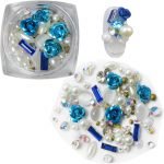 Nail art rhinestone : packed with plastic box, contact blue rose studs, round & flatback pearl beads,resin bead,etc.