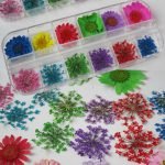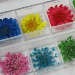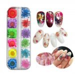 This decoration kit included 1 box pressed flower, 1 wheel nail rhinestone, 4 sheet nail art stickers